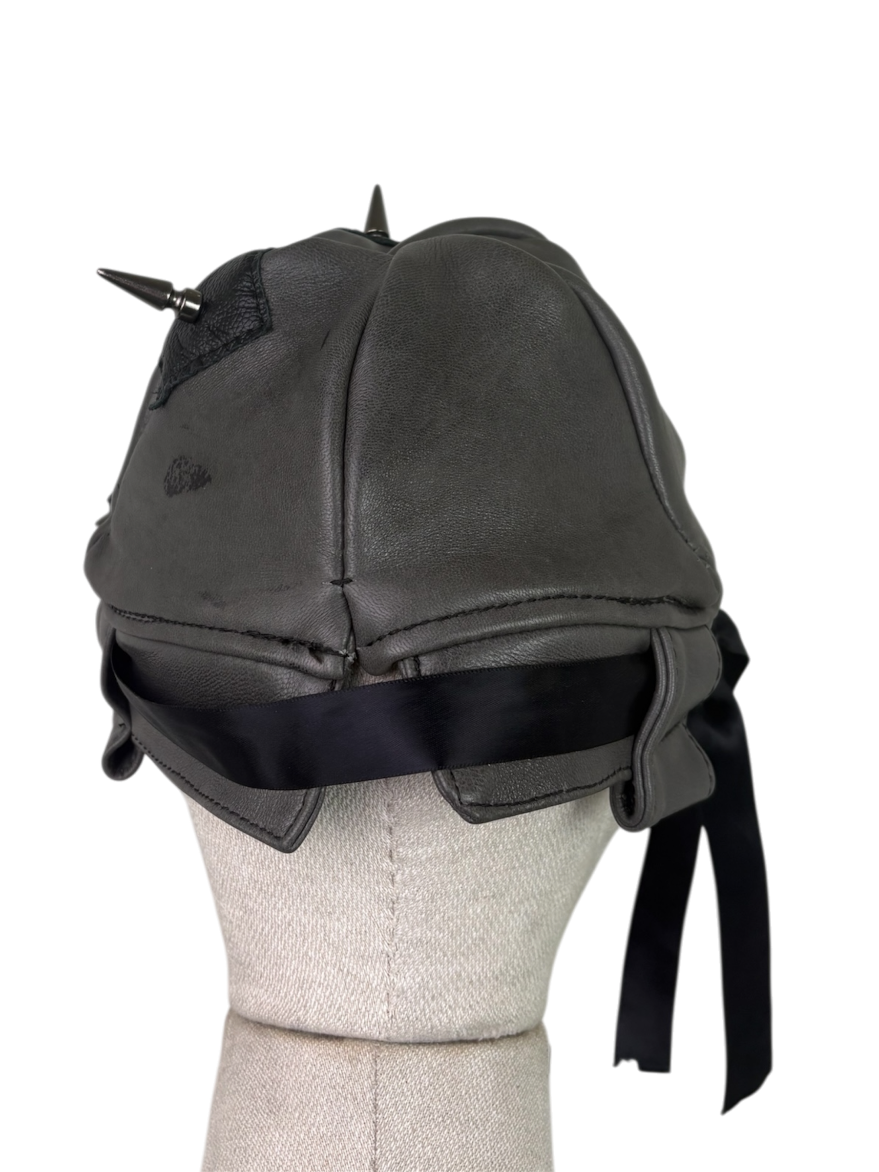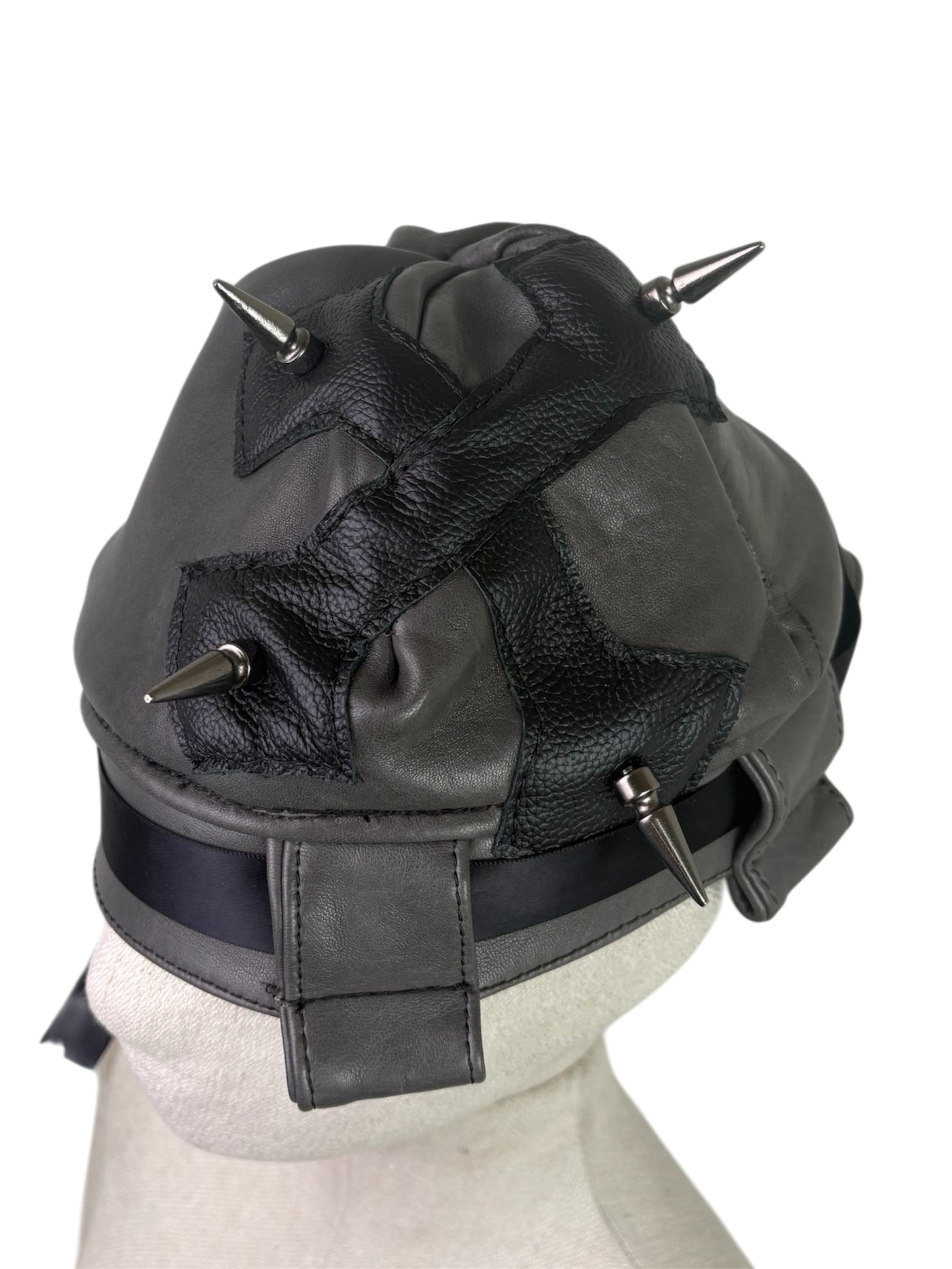Shop › X-Patch Cap Image 1 of 3 Image 2 of 3 Image 3 of 3 X-Patch Cap $100.00 gray lambskin shell, black cow leather accents. satin lined, ribbon accent. x marks the spot and spikes mark the x. Add To Cart Added! gray lambskin shell, black cow leather accents. satin lined, ribbon accent. x marks the spot and spikes mark the x.