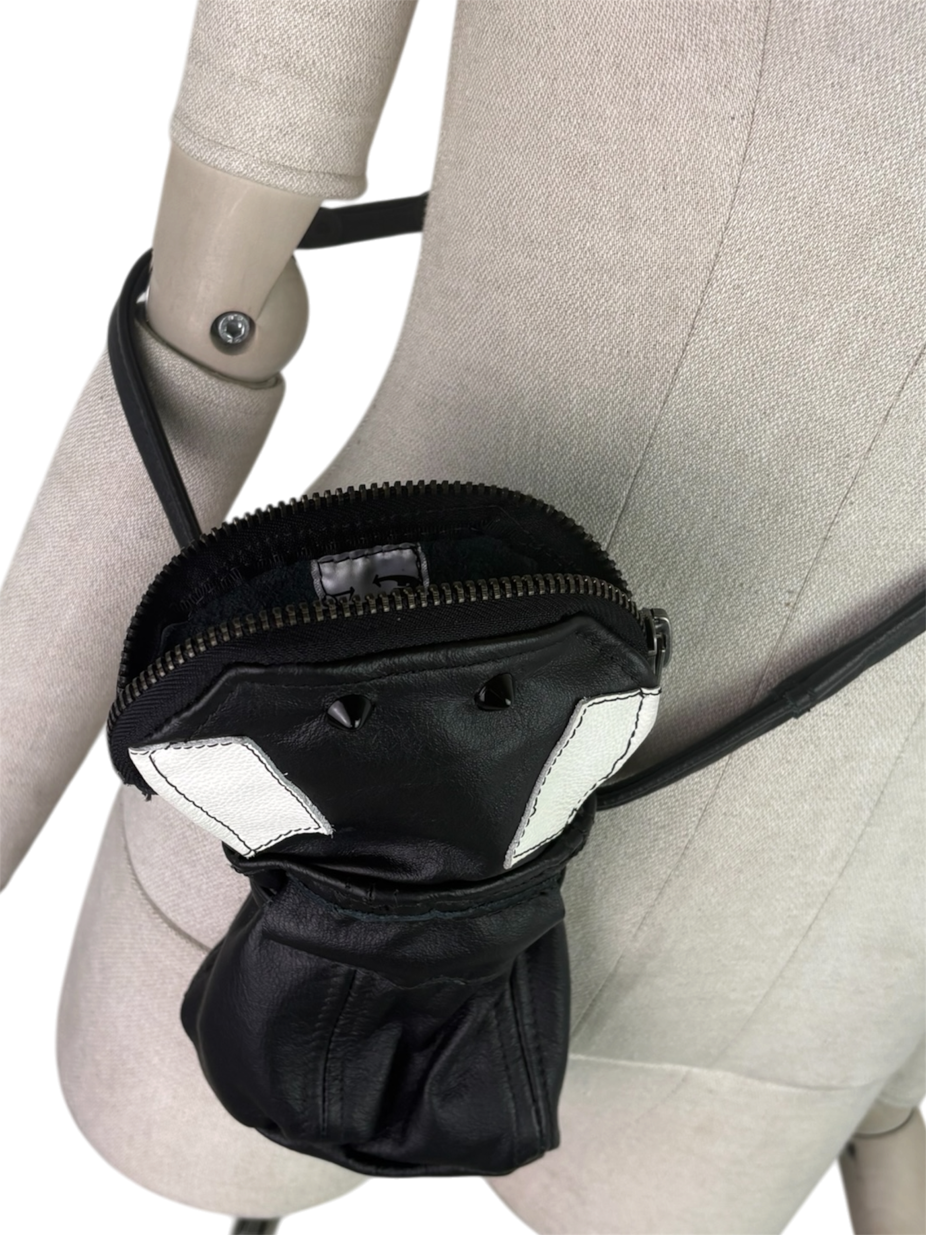 Shop › Critter Pouch Image 1 of 2 Image 2 of 2 Critter Pouch $100.00 zipper mouth, spiked nostrils, leather body. can fit a water bottle or perhaps a cellphone. adjustable strap. Add To Cart Added! zipper mouth, spiked nostrils, leather body. can fit a water bottle or perhaps a cellphone. adjustable strap.